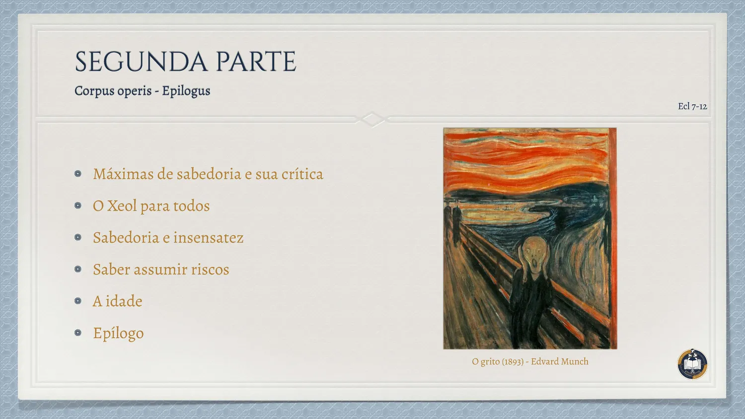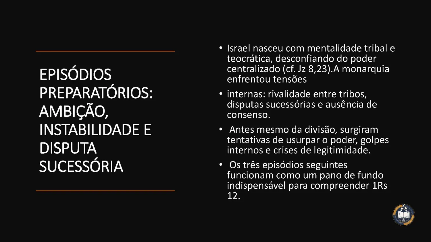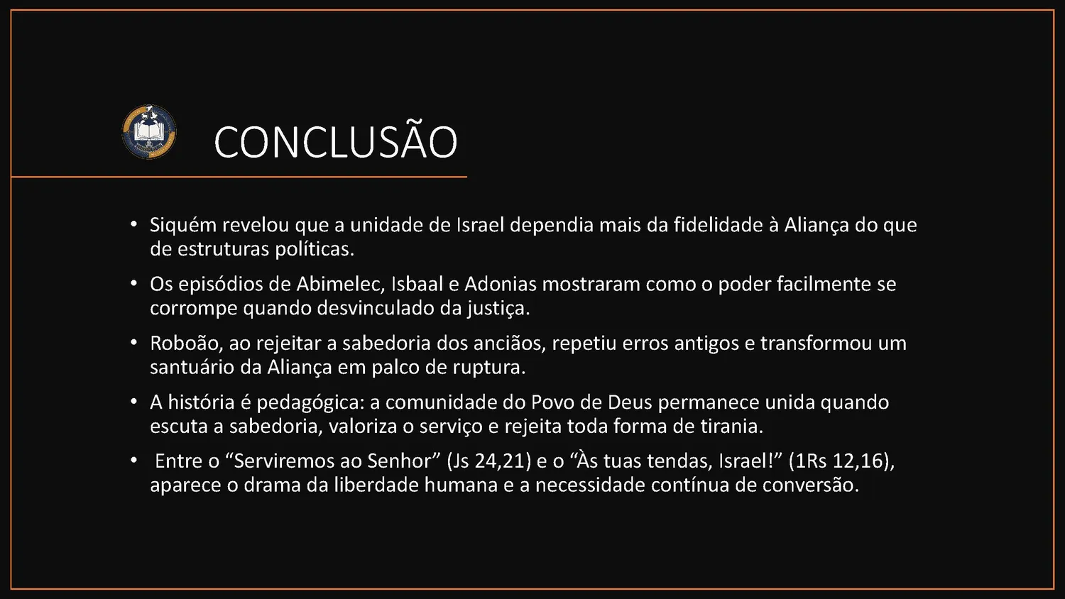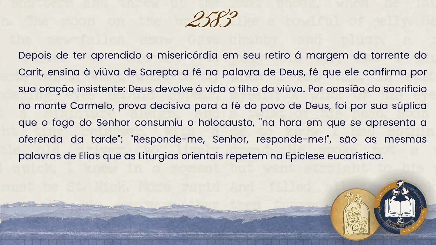 Nesta 29ª semana, a Escritura revela Minha presença: do ribeiro que secou ao fogo do Carmelo, do juízo de Acab ao chamado de Eliseu, da palavra de Obadias aos cantos dos Salmos (cf. 1Rs 17–22; 2Rs 4–8; 2Cr 18–23; Sl 82–83; Ob 1).