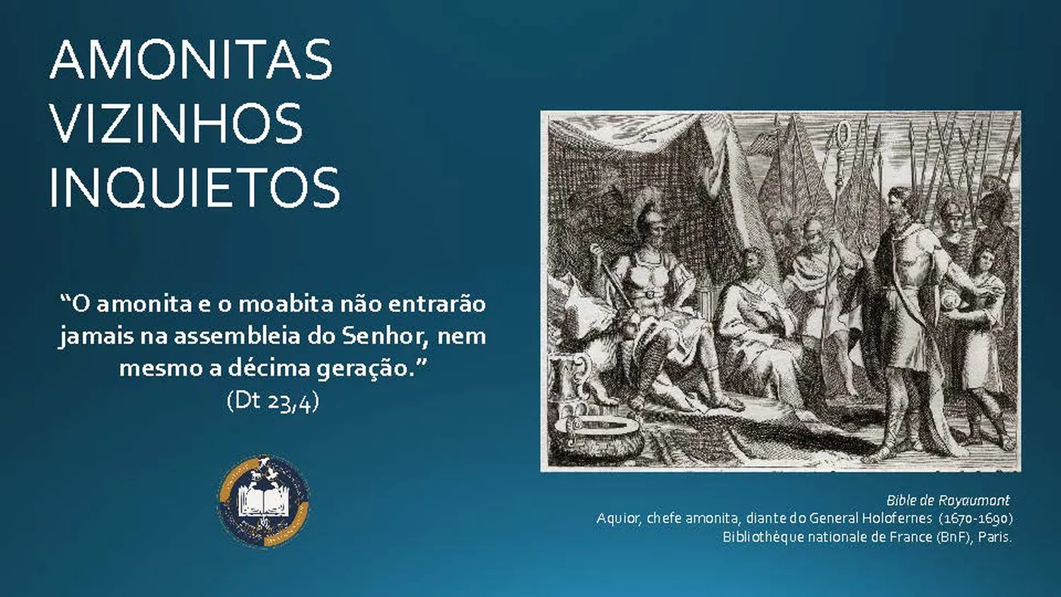 Descendentes de Ló por Ben-Ami (Gn 19,38), os amonitas formaram um pequeno reino guerreiro a nordeste do mar Morto, com capital em Rabá (atual Amã). Durante os Juízes, oprimiram Israel até serem derrotados por Jefté (Jz 10–11). Nos tempos de Saul e Davi, foram novamente vencidos e submetidos (1Sm 11; 2Sm 12).
