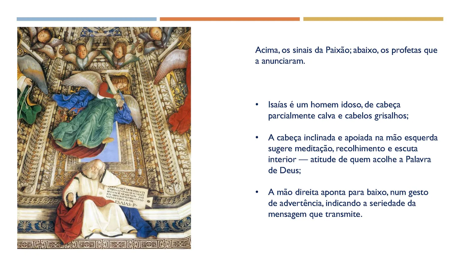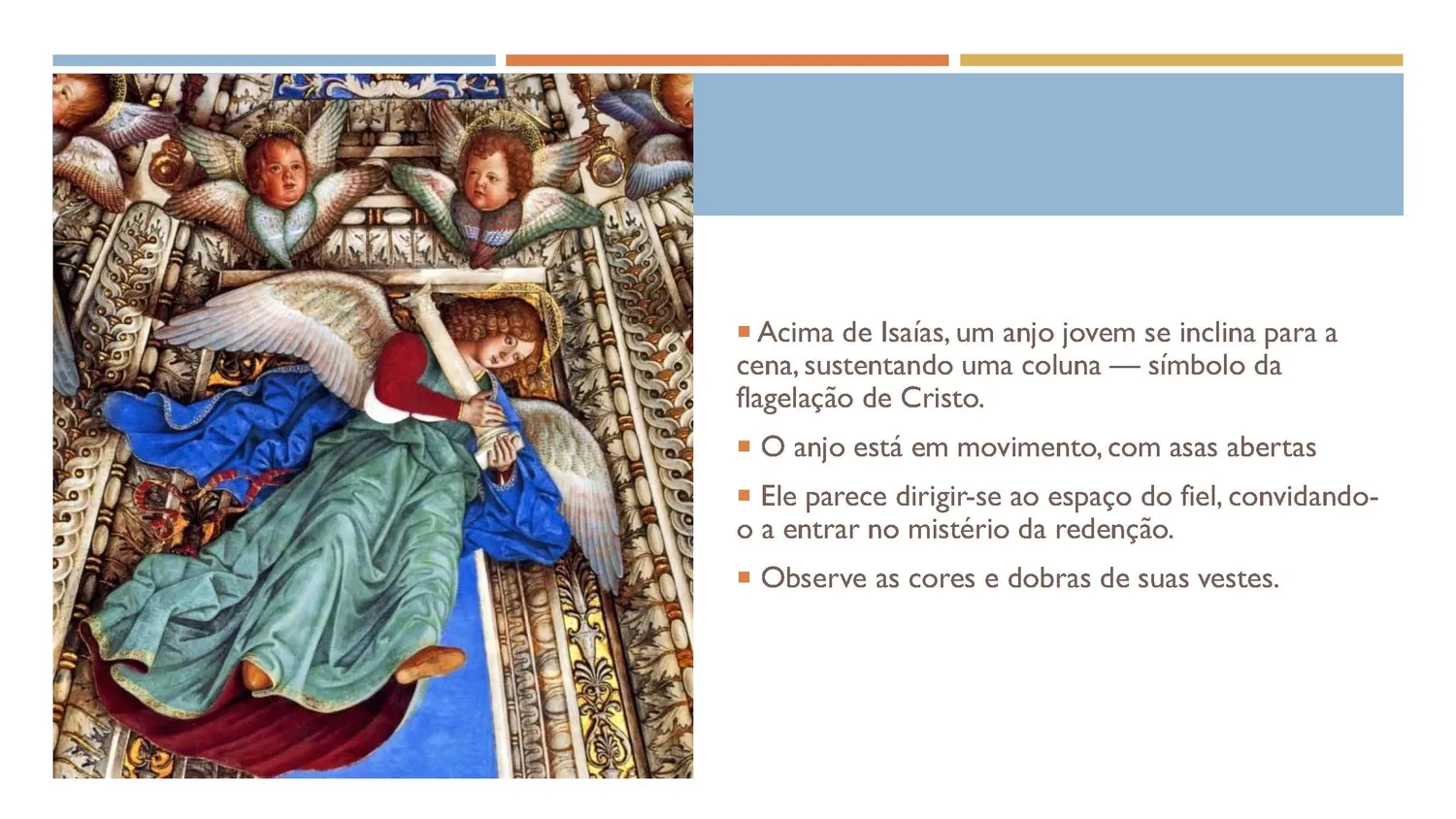 Contemplar Isaías é aprender a escutar a Palavra com profundidade. Contemplar o anjo com a coluna é reconhecer, nos sofrimentos de Cristo, o cumprimento das Escrituras. A obra convida o fiel a unir contemplação e testemunho na vida cristã.