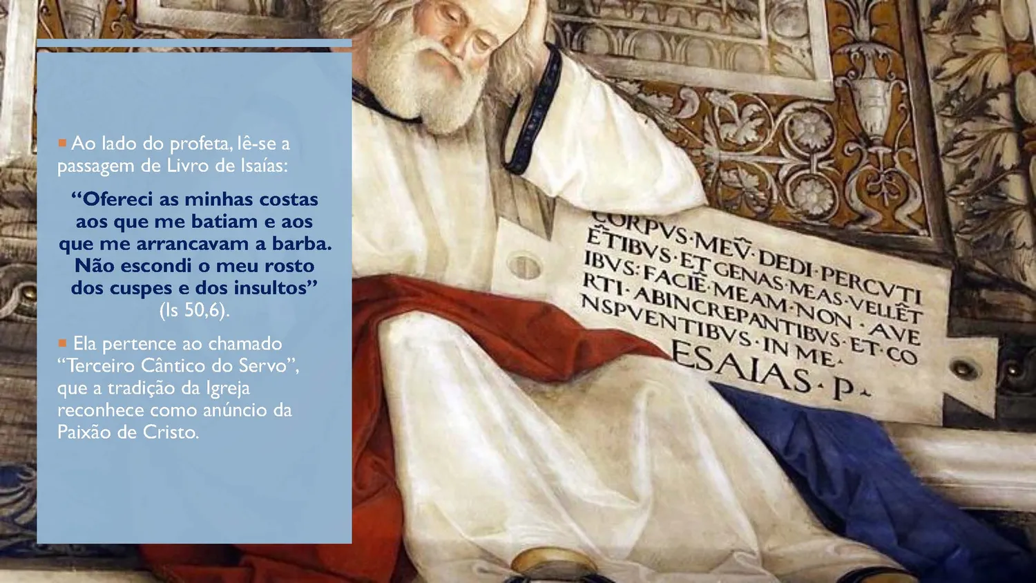 Materiais: paralelos com os Evangelhos; comentários patrísticos sobre o Servo do Senhor.