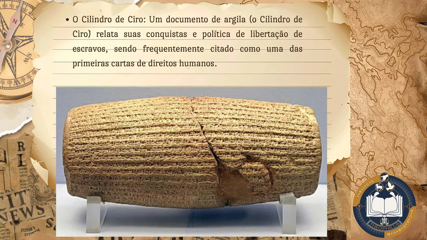 Diferente de muitos conquistadores, Ciro adotou uma política de respeito aos povos dominados. Permitiu que os exilados retornassem às suas terras e restaurassem suas tradições. Esse espírito é recordado no chamado “Cilindro de Ciro”, documento que expressa sua política de liberdade e frequentemente é associado às primeiras formulações de direitos humanos.