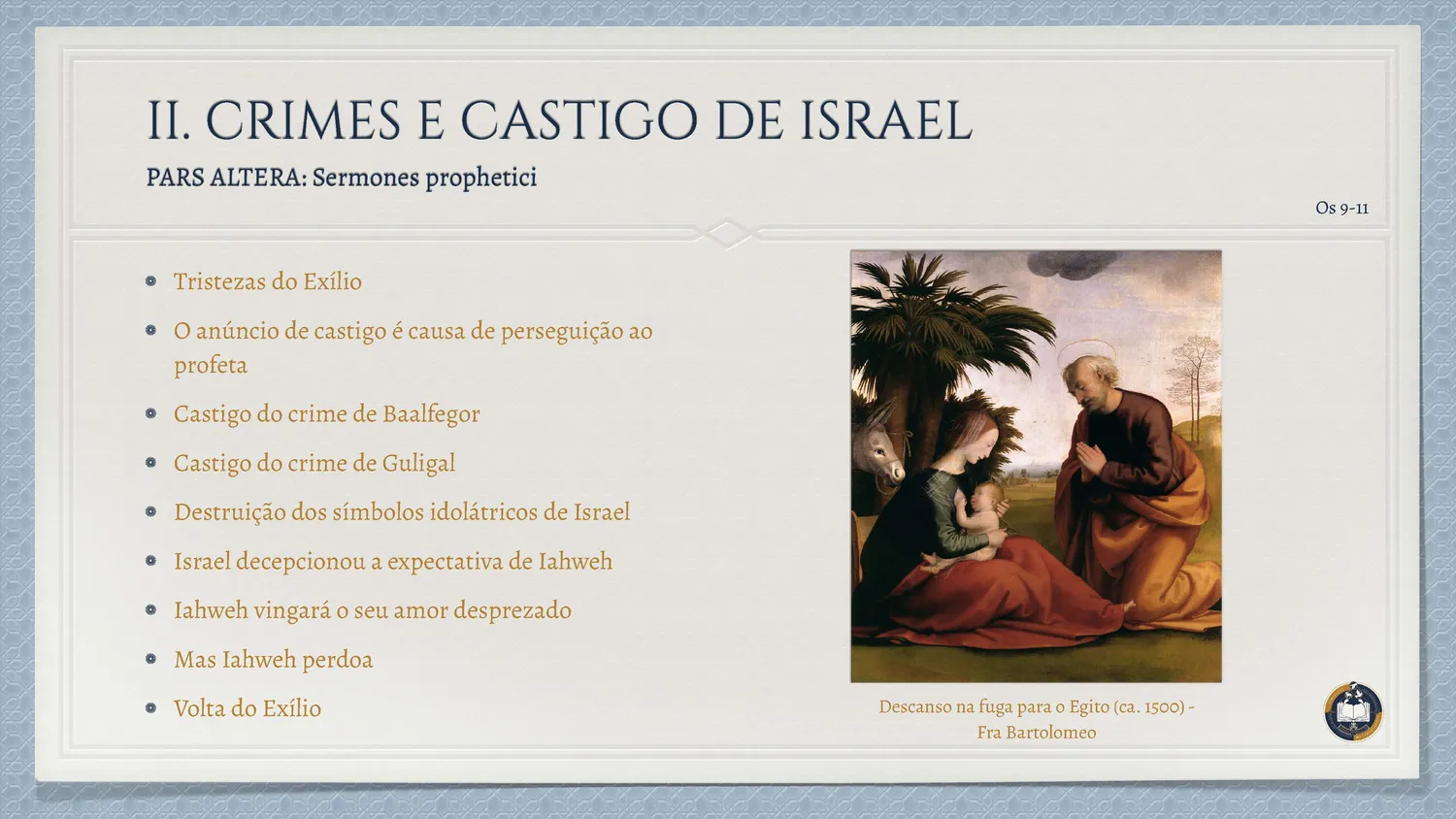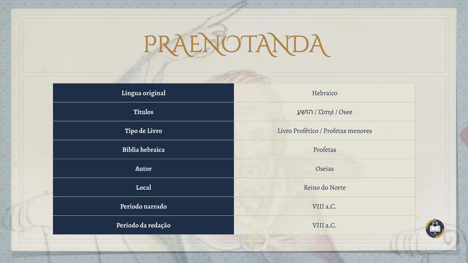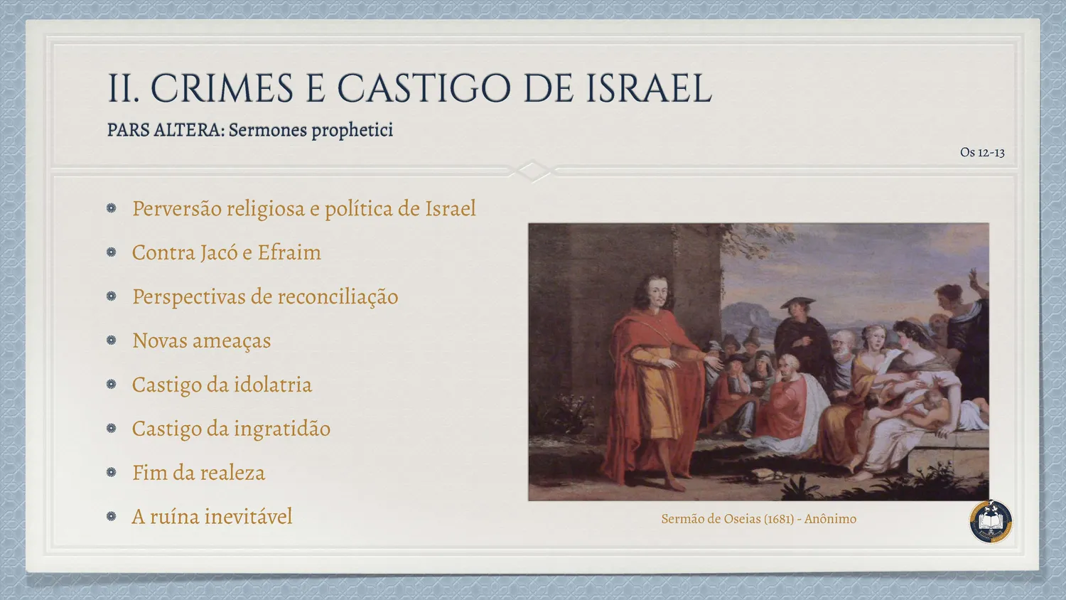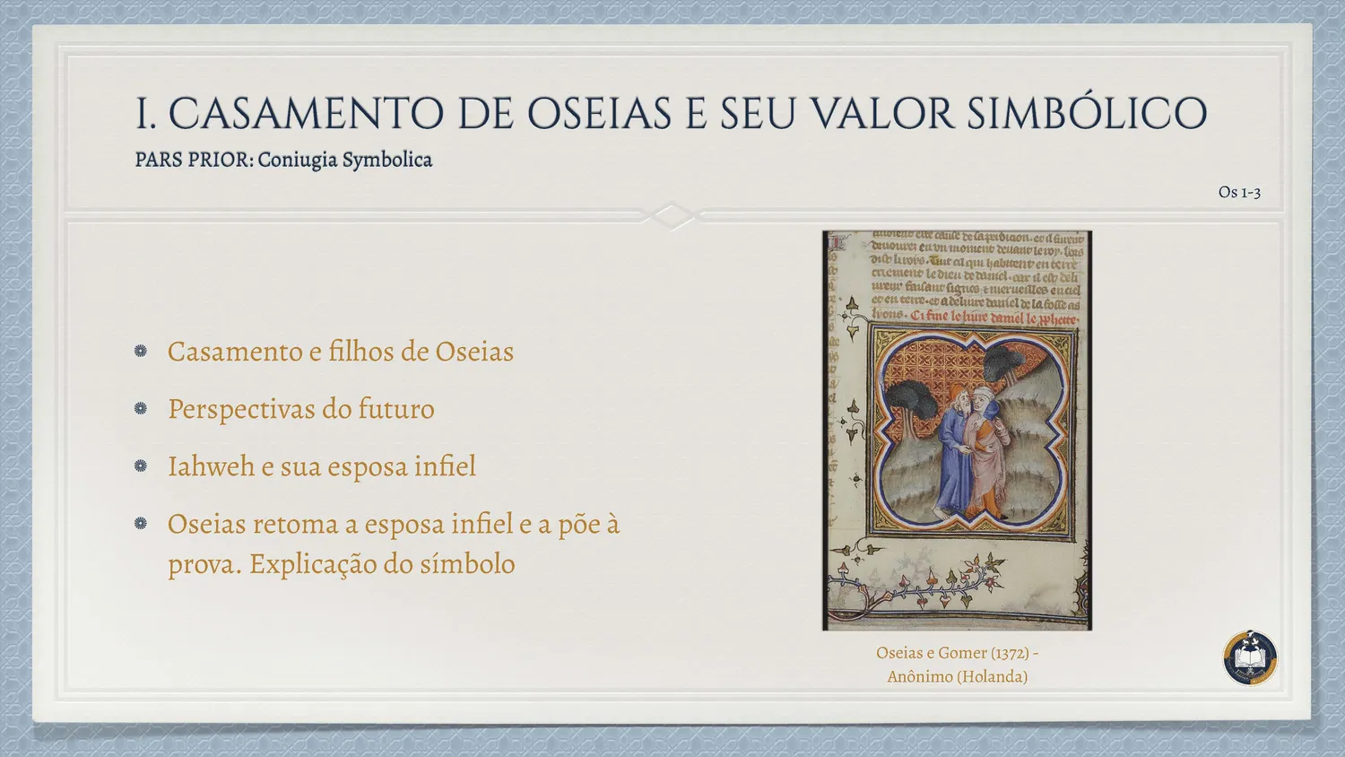 Inserido no contexto da decadência do Reino do Norte, o livro de Oseias apresenta uma das imagens mais profundas da relação entre Deus e Israel: o matrimônio. A vida do profeta torna-se sinal da Aliança, revelando a infidelidade do povo como um adultério espiritual.