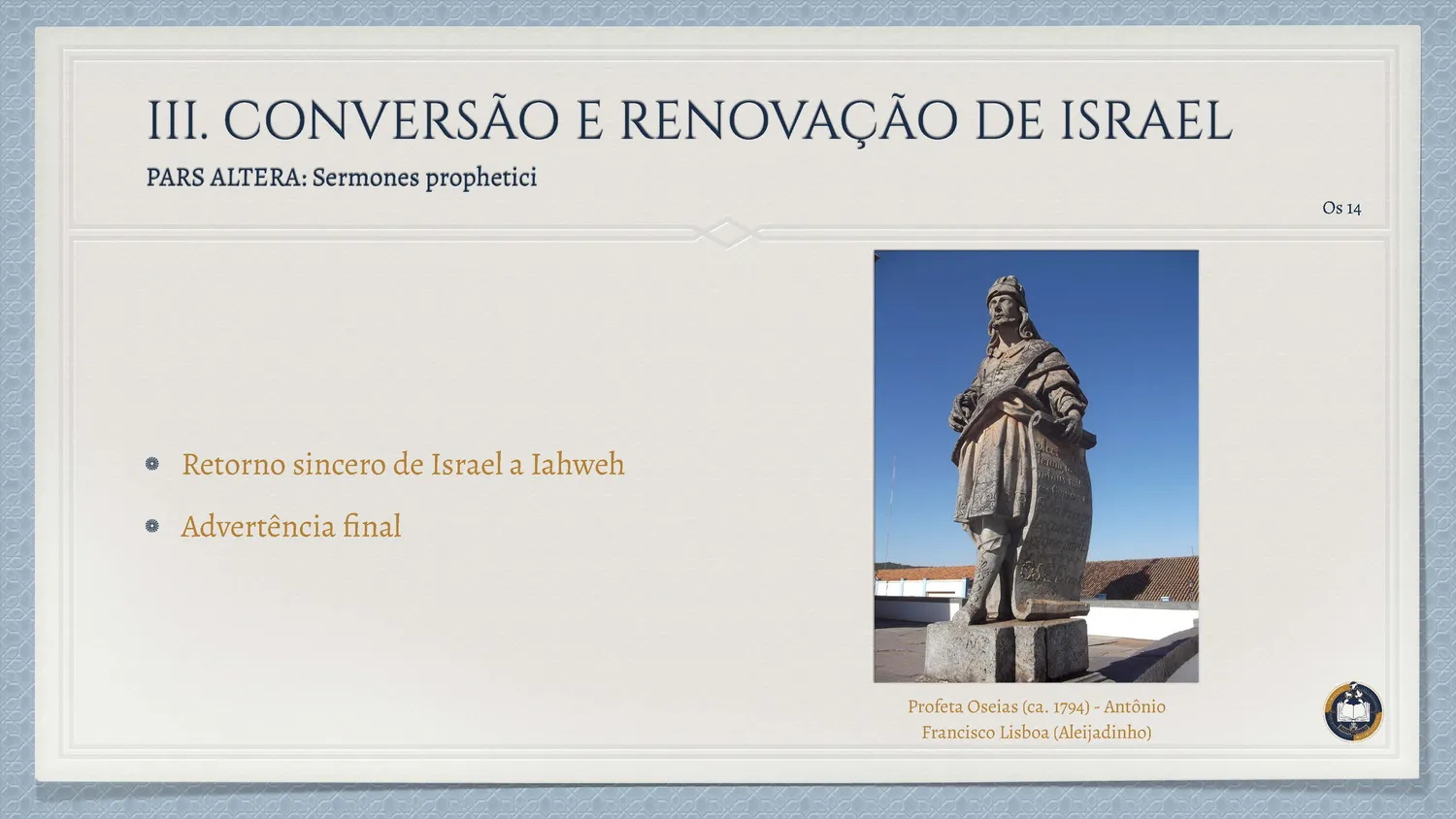 Objetivo: compreender o Livro de Isaías como grande anúncio da salvação, que revela a santidade de Deus e prepara o caminho para a plenitude em Cristo.