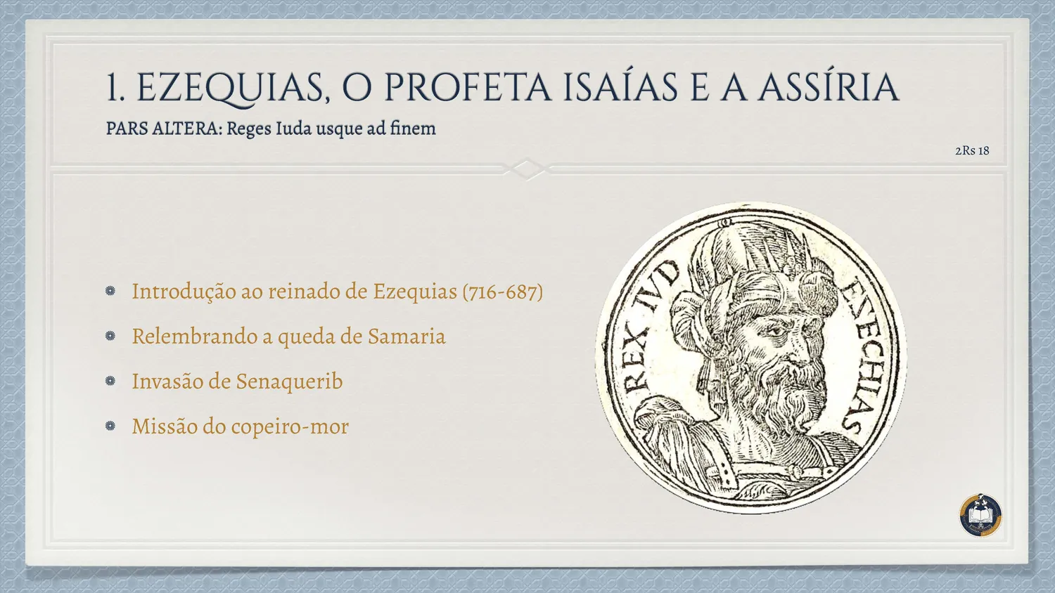 Durante o reinado de Ezequias, Judá enfrenta a invasão de Senaquerib. O discurso arrogante dos assírios procura abalar a confiança do povo, oferecendo falsas seguranças e tentando afastá-lo da fidelidade ao Senhor.