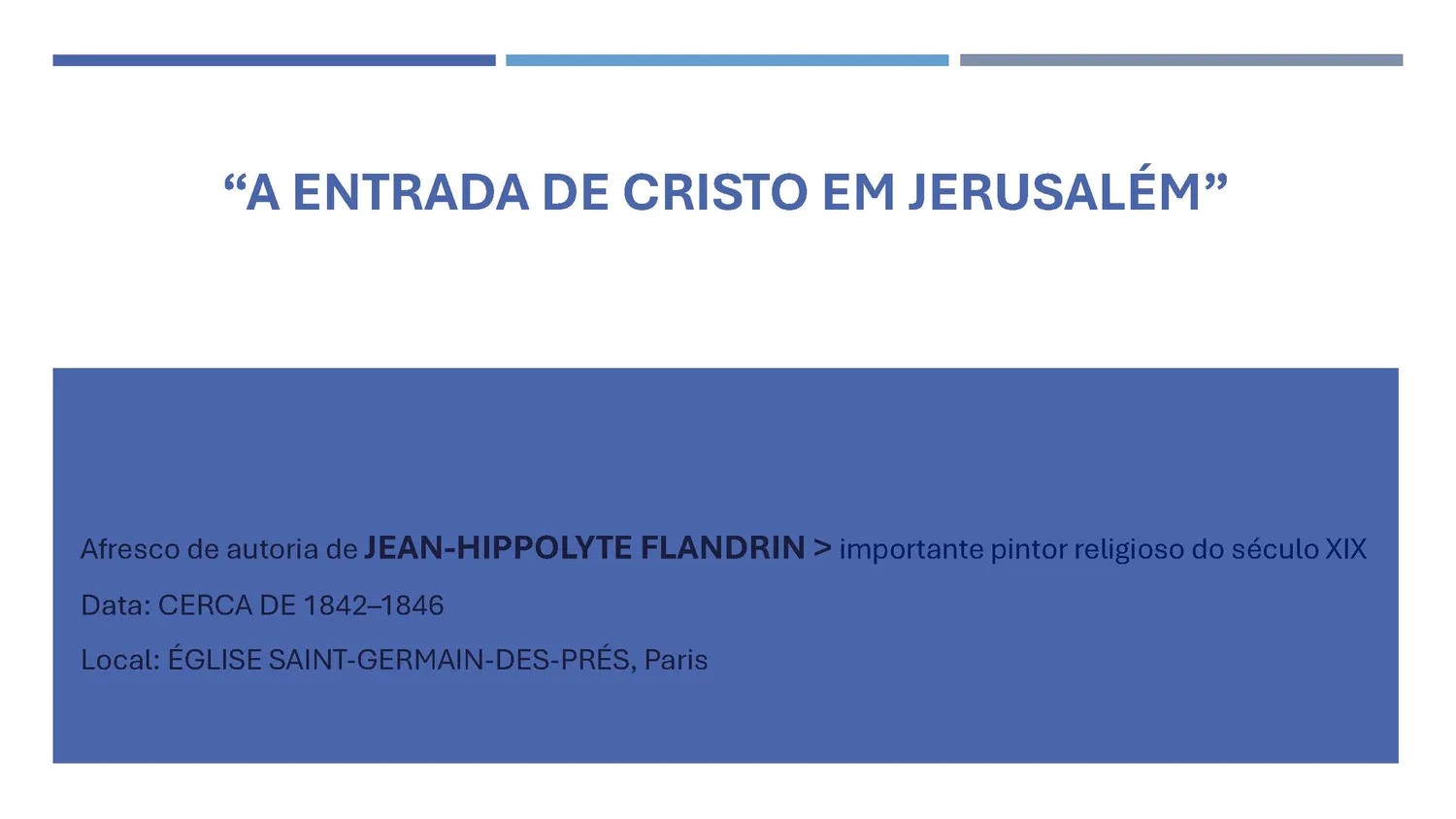 O afresco integra o ciclo de pinturas realizadas por Flandrin na igreja Saint-Germain-des-Prés, uma das mais antigas de Paris. Destacado pintor religioso do século XIX, o artista uniu espiritualidade, equilíbrio clássico e sobriedade estética, criando composições que favorecem a contemplação e a catequese visual.