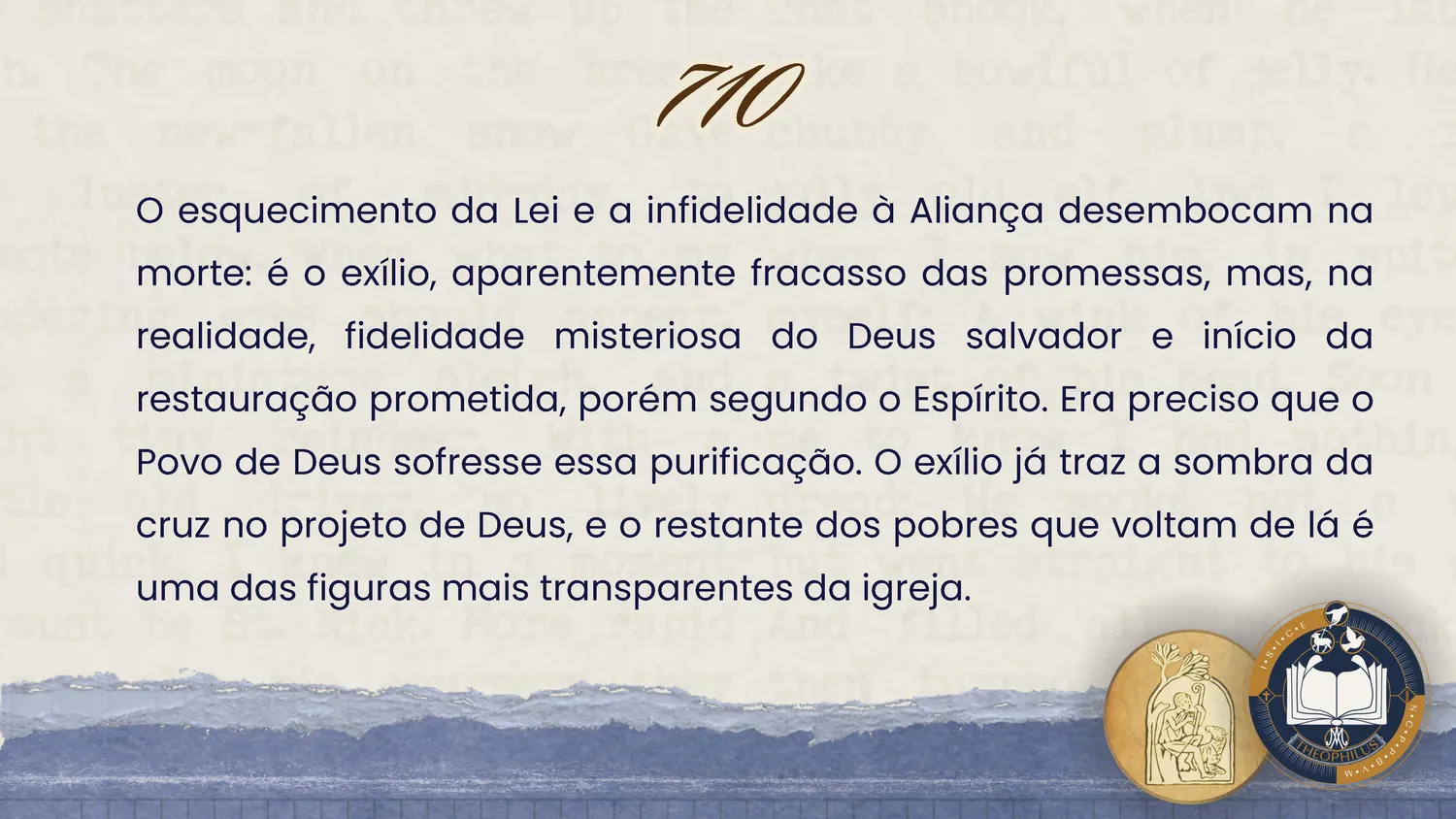 O exílio também ilumina a vida cristã. Ele recorda que momentos de crise, perda ou sofrimento podem tornar-se caminhos de encontro com Deus. Quando vividos na fé, esses tempos não são abandono, mas preparação para uma graça maior.