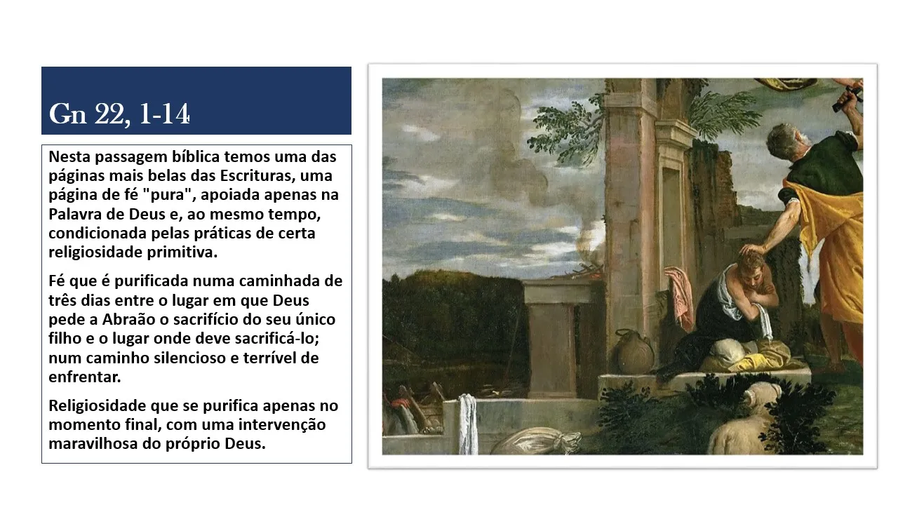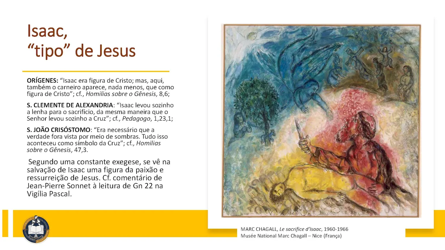 • Cristo no centro: Abraão é figura da fé cristã; sua obediência e confiança apontam para a entrega total de Cristo.