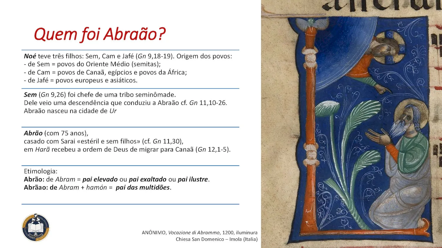 • Promessa divina: terra, descendência e bênção universal (Gn 12,1-3).