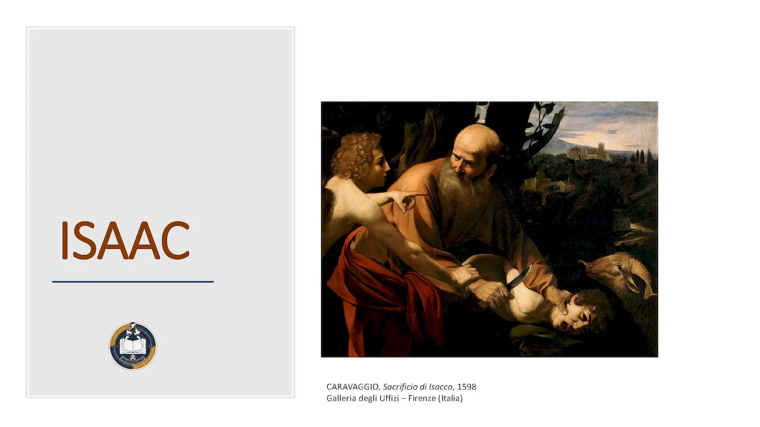 • Isaac (Gn 21–26): filho da promessa, confirma a bênção dada a Abraão. Visto pelos Padres como tipo de Cristo, carregando a lenha como imagem da Cruz.