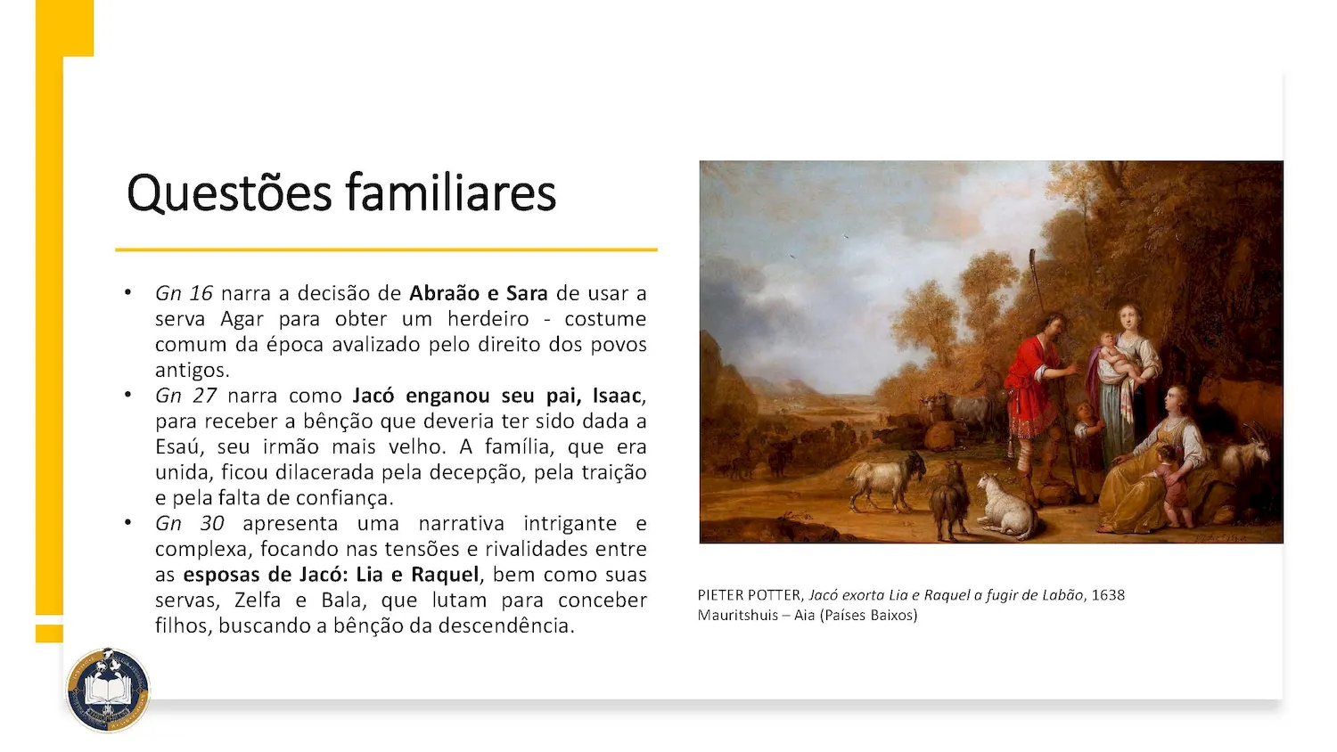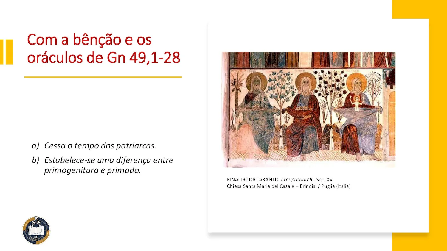 • Objetivo: aprender com os Patriarcas a viver a fé em meio às provações, reconhecendo a fidelidade de Deus que conduz a história da salvação.